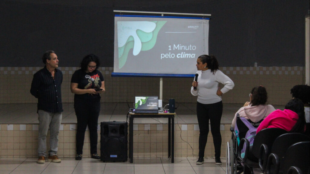 Esta atividade, que está em sua edição piloto, aconteceu na Escola Municipal Prefeito José Juarez Antunes, em Volta Redonda, e reuniu alunos do 8º e 9º ano com o objetivo de ensinar a produzir vídeos de até 1 minuto sobre a crise climática.